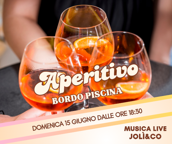 Domenica 15 giugno vi aspettiamo dalle ore 18:30 per un Aperitivo bordo piscina con la musica live di JOLÌ&CO – SWING, COUNTRY, SOUL E POP DAGLI ANNI ‘30 AD OGGI.
