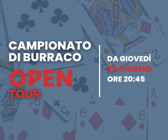 Da giovedì 29 Giugno ore 20:45 ha inizio il Campionato di Burraco “Open Tour”.