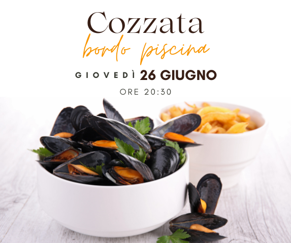 Giovedì 26 Giugno vi aspettiamo alle ore 20:30 per la “Cozzata” a bordo piscina con musica Dj Doc