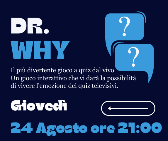 Giovedì 24 Agosto ore 21:00 torna l’appuntamento con Dr. Why, il più divertente gioco a quiz dal vivo!