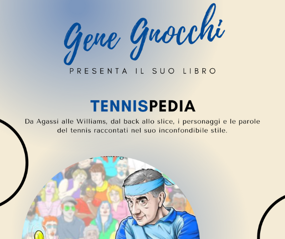Giovedì 4 Agosto Gene Gnocchi sarà ospite al nostro Circolo per presentare alle ore 21:00 il suo libro “TENNISPEDIA”: da Agassi alle Williams, dal back allo slice, i personaggi e le parole del tennis raccontati nel suo inconfondibile stile.