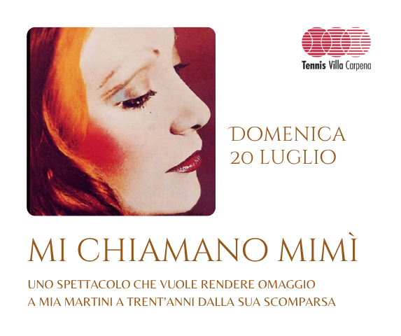 Vi aspettiamo Domenica 20 Luglio dalle ore 20:30 per una deliziosa cena alla carta e dalle ore 21:30 uno spettacolo che vuole rendere omaggio a Mia Martini a trent’anni dalla sua scomparsa.