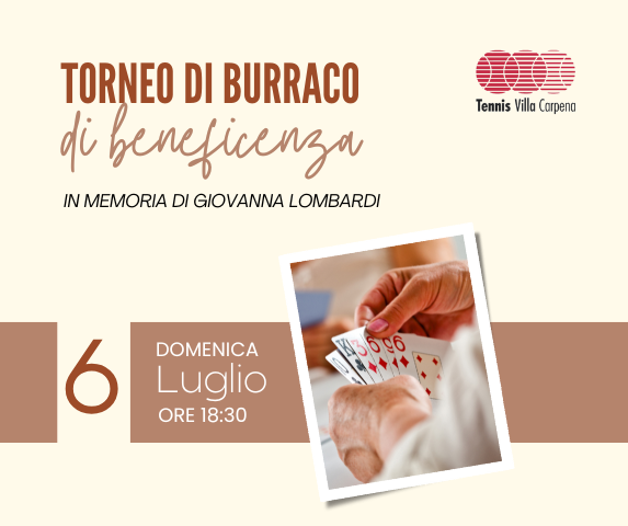 Domenica 6 Luglio alle ore 18:30 vi aspettiamo per Torneo di Burraco di beneficenza in memoria di Giovanna Lombardi.