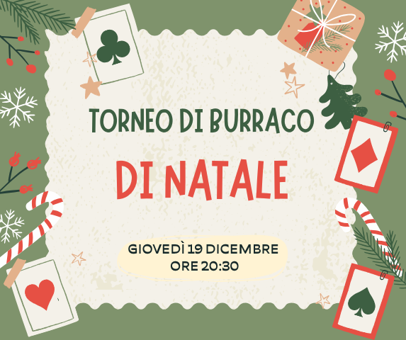 Appuntamento Giovedì 19 Dicembre alle ore 20:30 con il tradizionale Torneo di Burraco di Natale.